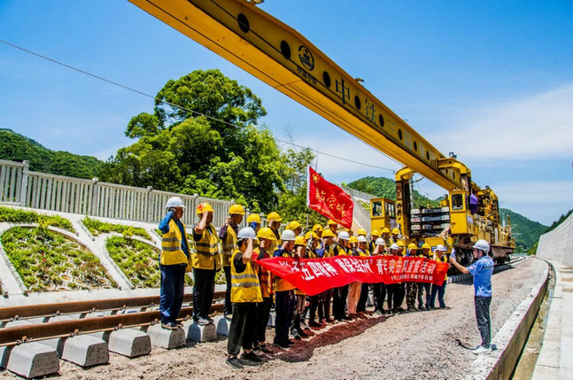 5月4日下午,為促進(jìn)施工生產(chǎn),充分發(fā)揮項(xiàng)目青年員工在急、難、險(xiǎn)、新、重任務(wù)中的先鋒突擊作用,培育“攻堅(jiān)克難、崇高實(shí)干、銳意創(chuàng)新、爭創(chuàng)一流”的三局鋪架團(tuán)隊(duì)精神,展示線橋青年的擔(dān)當(dāng)精神和獨(dú)樹一面的鮮明旗幟,確保515正線軌通,930全線開通工期節(jié)點(diǎn)。在鋪軌施工現(xiàn)場衢寧項(xiàng)目團(tuán)支部開展了“傳承五四精神 確保全線開通”青年突擊隊(duì)宣誓活動,公司團(tuán)委負(fù)責(zé)人逯平平參加此次活動。