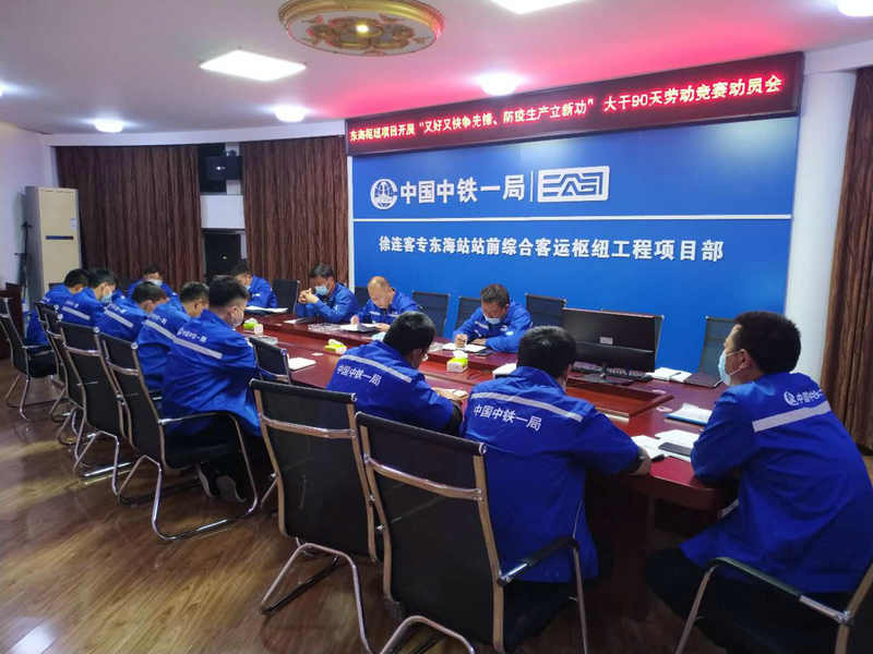 5月4日,中鐵一局三公司徐連客專東海站前樞紐工程項(xiàng)目部開展“又好又快爭(zhēng)先鋒、防疫生產(chǎn)立新功”大干90天勞動(dòng)競(jìng)賽動(dòng)員會(huì)。會(huì)議由項(xiàng)目黨支部書記韓國(guó)成主持,項(xiàng)目全體管理人員參加會(huì)議。