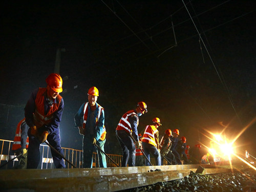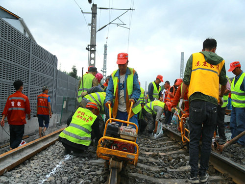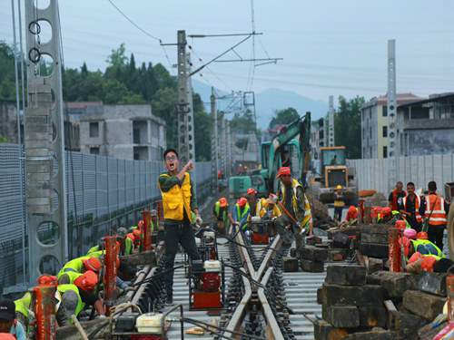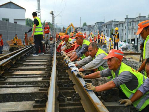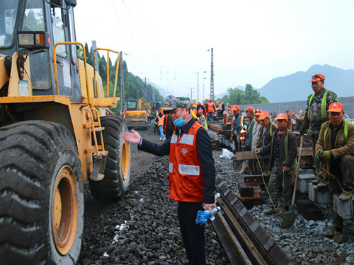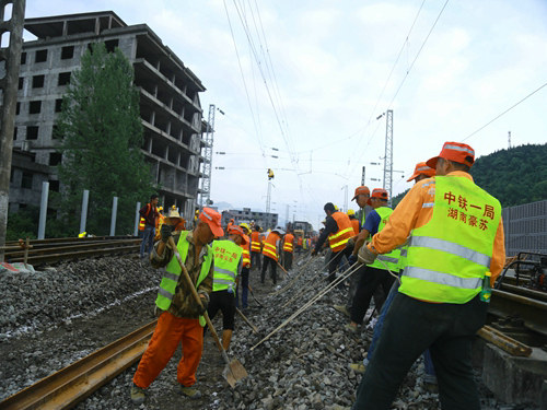 當(dāng)日17時(shí)19分,隨著封鎖命令的下達(dá),酉陽(yáng)車站重、懷兩端的施工現(xiàn)場(chǎng)里人聲鼎沸、機(jī)械轟鳴,承擔(dān)施工任務(wù)的中鐵一局新運(yùn)公司涪秀二線項(xiàng)目部的800余名鐵路建設(shè)者,奮起沖鋒、爭(zhēng)分奪秒,分別在3處封鎖地段展開施工。