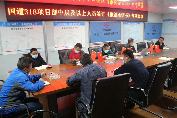 國(guó)道318項(xiàng)目部中層及以上人員簽訂《廉潔承諾書(shū)》儀式
