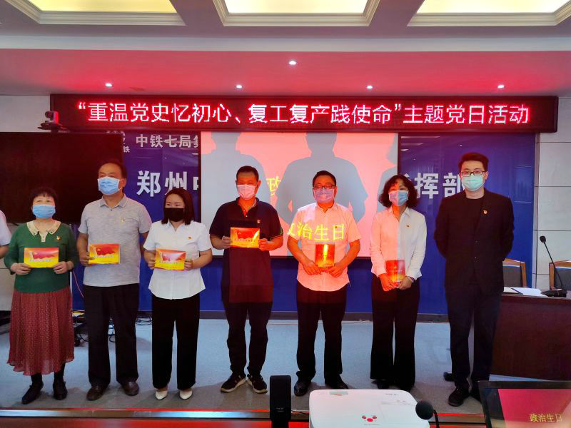 為扎實(shí)推進(jìn)“不忘初心、牢記使命”主題教育長效機(jī)制建設(shè),發(fā)揮好基層黨組織戰(zhàn)斗堡壘作用和黨員先鋒模范作用,為實(shí)現(xiàn)疫情防控和復(fù)工復(fù)產(chǎn)雙勝利貢獻(xiàn)力量,5月15日,中國中鐵七局中產(chǎn)置業(yè)公司鄭州黨支部聯(lián)合馬砦社區(qū)黨支部在公司301會議室組織開展了“重溫黨史憶初心、復(fù)工復(fù)產(chǎn)踐使命”主題黨日活動。
