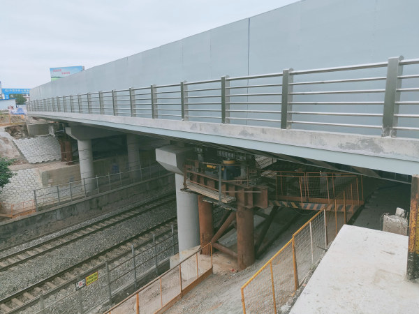 項目部于2019年5月正式進場施工,于8月完成舊橋拆除,12月完成鋼箱梁右幅頂推施工。本次左幅鋼箱梁頂推利用鐵路封鎖時間滑行跨越既有鐵路,共歷經(jīng)4次鐵路要點,施工跨越橋梁第一、二、三跨,累計頂推46米,頂推總重量約360噸。