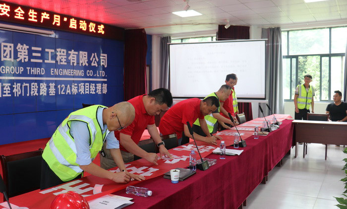 開展“安全四個一”活動,即安全生產(chǎn)個各領(lǐng)導(dǎo)小組組長上一次安全警示教育課,圍繞安全生產(chǎn)月開展一次應(yīng)急演練,提高廣大員工應(yīng)對突發(fā)事故的能力和水平,開展一次安全宣誓和一次“消除事故隱患,筑牢安全防線”安全主題簽名活動,讓“安全”二字深入人心,家喻戶曉,讓每位員工牢固樹立安全第一的思想規(guī)范自己的行為,激發(fā)全員自覺參與安全生產(chǎn)月活動的熱情,創(chuàng)建平安工地。