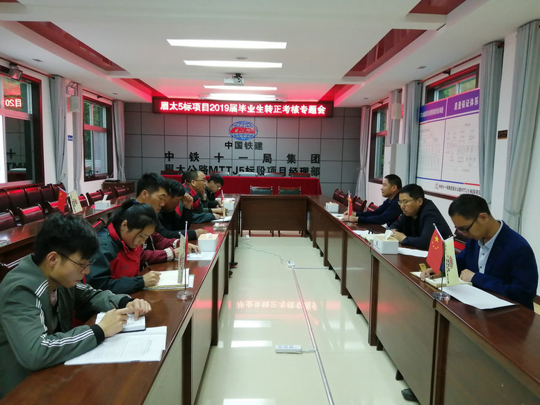 本站陜西寶雞訊:5月23日,為充分了解和掌握項(xiàng)目部2019屆畢業(yè)生在見習(xí)期間生活、工作動態(tài),中鐵十一局四公司眉太高速5標(biāo)項(xiàng)目部召開2019屆畢業(yè)生轉(zhuǎn)正考核專題會,會議由項(xiàng)目領(lǐng)導(dǎo)班子成員、2019屆畢業(yè)生及導(dǎo)師參加。