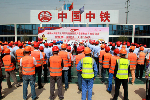 (西安訊)為深入貫徹落實(shí)中國(guó)中鐵股份公司和中鐵一局“五保一樹(shù)”主題實(shí)踐活動(dòng)和“抗疫情、保增長(zhǎng),大干100天”專項(xiàng)勞動(dòng)競(jìng)賽部署要求。5月31日,在全國(guó)第十九個(gè)“安全生產(chǎn)月”來(lái)臨之際,中鐵一局建安公司在國(guó)家級(jí)一帶一路國(guó)際商事法庭服務(wù)示范區(qū)項(xiàng)目舉辦了勞動(dòng)競(jìng)賽誓師大會(huì)暨2020年安全月啟動(dòng)儀式,公司全國(guó)各在建項(xiàng)目同步進(jìn)行,全面“吹響”了百日大干促生產(chǎn)的熱潮號(hào)角。