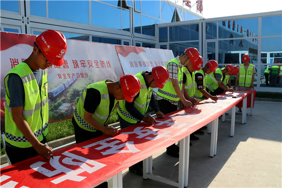 6月1日7:20分,中鐵一局京德高速ZT7標(biāo)項(xiàng)目開展2020年安全生產(chǎn)月啟動暨安全宣誓活動,拉開京德高速項(xiàng)目“消除事故隱患,筑牢安全防線”為主題的2020年安全生產(chǎn)月活動序幕。項(xiàng)目部領(lǐng)導(dǎo)班子成員、各部門管理人員、群安員、青安崗等70余人參加了此次啟動儀式并進(jìn)行簽名活動。