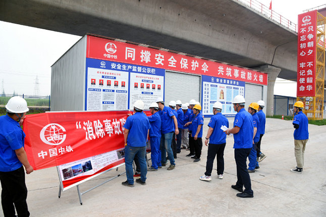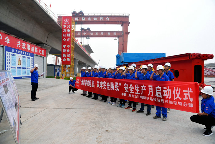 為保證箱梁架設(shè)工作安全有序進(jìn)行,保質(zhì)保量完成施工生產(chǎn)任務(wù),6月1日,中鐵三局線橋公司南沿江項(xiàng)目開展2020年“消除事故隱患,筑牢安全防線”為主題的安全生產(chǎn)月活動(dòng)啟動(dòng)儀式。