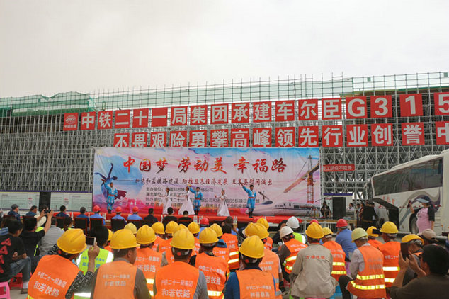 為弘揚(yáng)以企業(yè)為家的文化理念,凝聚職工向心力,調(diào)動(dòng)拓展員工的工作激情和斗志,確保和若鐵路項(xiàng)目各項(xiàng)節(jié)點(diǎn)目標(biāo)任務(wù)順利完成,近日,中鐵二十一局一公司和若鐵路S5標(biāo)項(xiàng)目經(jīng)理部與新疆和若鐵路有限公司聯(lián)合且末縣文工團(tuán)在和若鐵路S5標(biāo)一工區(qū)開展了以“中國夢•勞動(dòng)美•幸福路”為主題的慰問演出活動(dòng)。