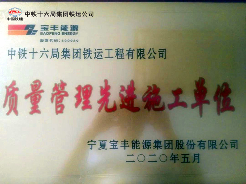 本站訊 ( 范園園 劉雪松 ) 6月9日,從寧夏寶豐能源集團(tuán)股份有限公司施工質(zhì)量、文明施工先進(jìn)表彰大會(huì)上獲悉,中鐵十六局鐵運(yùn)公司承建的寶豐園區(qū)鐵路工程項(xiàng)目榮獲“質(zhì)量管理先進(jìn)施工單位”榮譽(yù)。