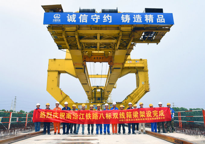 6月10日,隨著一榀重達(dá)790噸的箱梁緩緩落在跨疏港高速公路特大橋624#-623#墩上,宣告了南沿江項(xiàng)目56榀雙線箱梁架設(shè)完成,為后續(xù)單線箱梁施工打下了堅(jiān)實(shí)基礎(chǔ)。