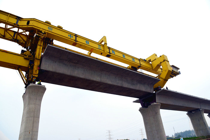 線橋公司承擔(dān)標(biāo)段內(nèi)56榀雙線箱梁及932榀單線箱梁的架設(shè)任務(wù),自2020春節(jié)后進(jìn)場(chǎng)以來,積極復(fù)工,做到生產(chǎn)防疫兩手抓,迅速完成了架橋機(jī)、運(yùn)梁車拼裝成功并吊裝上橋并達(dá)到架梁狀態(tài),結(jié)合“大干100天”勞動(dòng)競(jìng)賽的要求,項(xiàng)目部迅速行動(dòng),抓住當(dāng)前有利時(shí)機(jī),全力以赴打好達(dá)產(chǎn)超產(chǎn)攻堅(jiān)戰(zhàn),咬定目標(biāo),通過加強(qiáng)施工組織,合理調(diào)配機(jī)械設(shè)備及物資供應(yīng),實(shí)行現(xiàn)場(chǎng)領(lǐng)導(dǎo)跟班制度,明確職責(zé),專人負(fù)責(zé)提、運(yùn)、架過程中的監(jiān)督、管控,確保了箱梁的安全架設(shè)。
