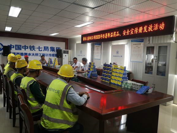 入夏以來(lái),雨情增多,氣溫攀升。中鐵七局懷化舞水大橋項(xiàng)目面臨著汛期與暑期的雙重考驗(yàn)。6月14日,為有效保障現(xiàn)場(chǎng)作業(yè)人員施工安全,避免因高溫悶熱天氣引發(fā)的生產(chǎn)事故,項(xiàng)目部組織開(kāi)展了“夏送清涼”活動(dòng),并給各施工班組發(fā)放防暑降溫用品和安全宣傳冊(cè)。