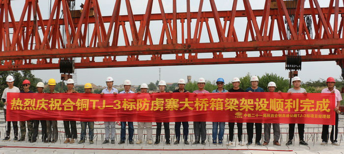 本網(wǎng)陜西渭南訊(劉霖凱 程興虎)6月13日,由中鐵二十一局三公司承建的合(陽)銅(川)高速公路TJ-3標(biāo)防虜寨大橋箱梁架設(shè)順利完成,標(biāo)志著該標(biāo)段又一次取得了階段性勝利。