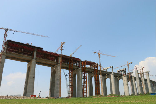 面對76米高空支架現(xiàn)澆復雜的工況,在沒有成功經(jīng)驗借鑒的情況下,中國鐵建大橋局西北公司蒙華項目團隊穩(wěn)扎穩(wěn)打,積極總結了公路梁首節(jié)段順利澆筑的成功經(jīng)驗。在加強施工安全質(zhì)量及技術創(chuàng)新管理的同時,向圓滿完成北引橋剩余施工任務發(fā)起最后沖刺,向成為超高墩梁部現(xiàn)澆施工高水平的技術團隊砥礪前行。