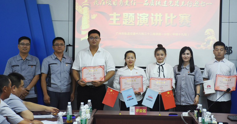 (本站廣州消息,通訊員駱文靜),6月28日,中鐵建華南建設(shè)十八和二十二號(hào)線一分部(中鐵十九局管段)舉辦了慶祝建黨九十九周年“我在項(xiàng)目有責(zé)任—品質(zhì)鐵建黨員先行迎七一”主題演講比賽活動(dòng), 80多人參加活動(dòng),17名選手踴躍參賽。