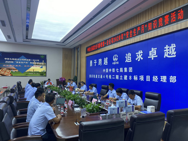 為全面為進一步掀起“百日大干”勞動競賽熱潮,貫徹落實2020年全國“安全生產月”---“消除事故隱患、筑牢安全防線”活動主題, 6月27日晚,中鐵七局武漢公司橋梁第一分公司組織全員開展“安全生產月”知識競賽活動。