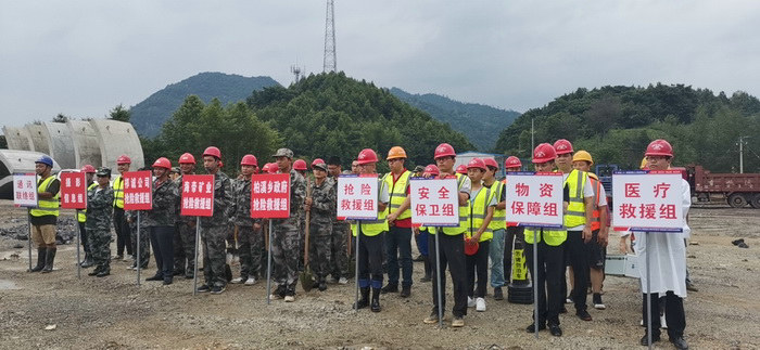 進入6月份以來,南方進入主汛期,特別是皖南山區(qū)進入梅雨季節(jié)后,大雨、暴雨明顯增多。受暴雨影響,不少施工地段出現(xiàn)洪澇和泥石流等地質(zhì)災(zāi)害,給當?shù)厝嗣袢罕姾褪┕どa(chǎn)帶來了威脅。為統(tǒng)籌做好疫情防控和防汛救災(zāi),堅持“人民至上,生命至上”的宗旨,項目部聯(lián)合柏溪鄉(xiāng)政府部門,上演了一場真刀真搶的防汛聯(lián)合應(yīng)急救援演練。
