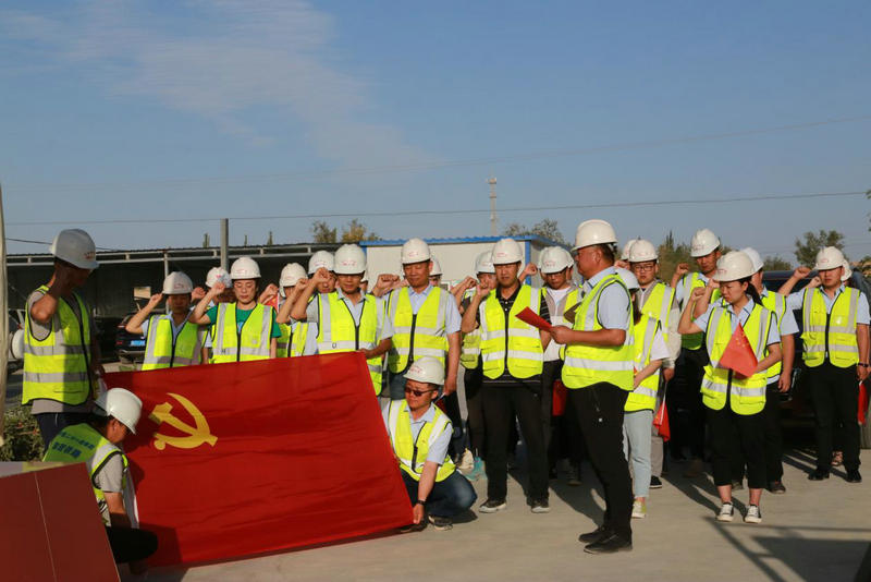 活動在雄壯的國歌聲中拉開序幕,全體職工統(tǒng)一著裝舉行了升旗儀式,升旗儀式結(jié)束后項目經(jīng)理帶領(lǐng)全體黨員在鮮艷的黨旗前,重溫入黨誓詞,牢記共產(chǎn)黨員的初心和使命。接著,全體職工合唱了《歌唱祖國》,表達了項目全體職工對祖國的喜愛和以及對祖國美好未來的祝愿?;顒幼詈?,全體職工觀看了《中國共產(chǎn)黨發(fā)展史》紀錄片。