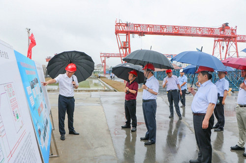 丁建奇一行實地查看了江寧制梁場預(yù)制箱梁生產(chǎn)情況,聽取了公司副總經(jīng)理兼項目經(jīng)理鄭東關(guān)于南沿江城際鐵路項目工程概況、工期進(jìn)展等方面情況的匯報,丁建奇對中鐵四局南沿江城際鐵路項目建設(shè)各方面工作積極開展和取得的成績給予了肯定。