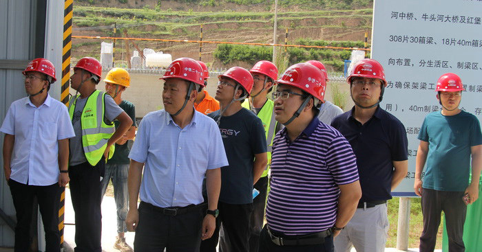 圖為馬建軍(右三)查看梁場(chǎng)建設(shè)情況為您推薦