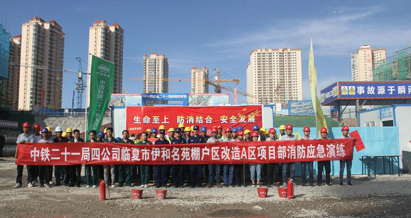 7月28日,中鐵二十一局四公司臨夏市伊和名苑棚戶區(qū)改造A區(qū)項(xiàng)目部組織開(kāi)展消防應(yīng)急演練活動(dòng),項(xiàng)目部全體干部職工及參建勞務(wù)隊(duì)代表參加演練。