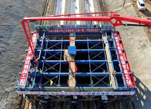 此次混凝土的成功澆筑,再一次成功兌現(xiàn)了“大干一百天”勞動競賽的節(jié)點目標,同時再一次用實際行動表明項目部以踏石留印、抓鐵有痕的精神,利用一切資源、抓緊有限的時間向競賽目標沖刺。