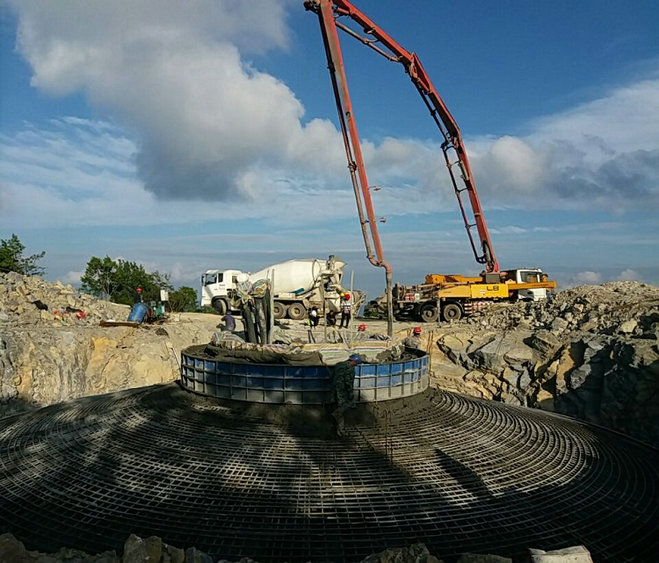 圖為湖北風(fēng)電項目南1區(qū)風(fēng)機(jī)基礎(chǔ)澆筑施工