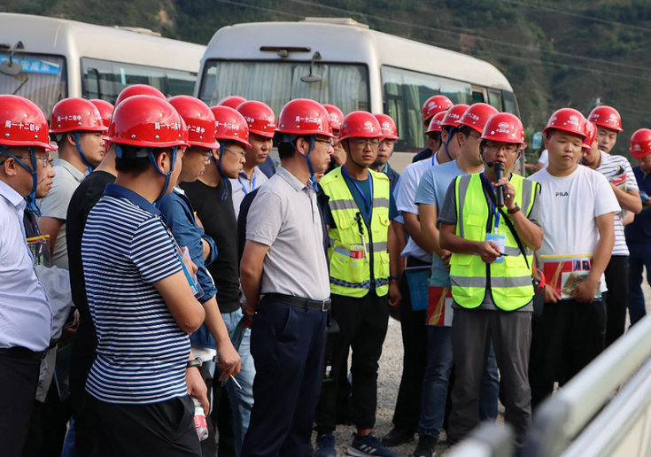9月3日,中鐵二十一局集團公司總經(jīng)理、黨委副書記趙彥旭,副總經(jīng)理、總工程師馮建軍、集團公司運管部、安監(jiān)部、科創(chuàng)部、成本部、黨委宣傳部及一、二、三、四、五、六、路橋、軌道、兩電、國際、鐵建中原公司領(lǐng)導(dǎo)和各項目部100多名同事來到四公司承建的天莊高速公路西城山隧道出口工程和箱梁預(yù)制場進行參觀。此次觀摩由集團總部主辦,四公司天莊高速公路項目部承辦。
