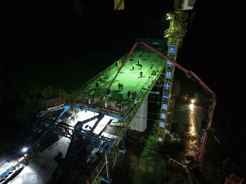 9月11日凌晨2點18分,在中鐵十一局常益長鐵路六標(biāo)八曲河特大橋48米連續(xù)梁施工現(xiàn)場,隨著最后一車混凝土澆筑入槽,標(biāo)志著該標(biāo)段首座連續(xù)梁順利合龍。
