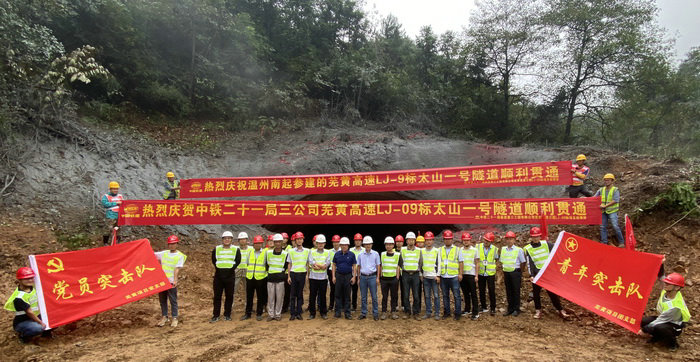 圖為建設(shè)者慶祝隧道貫通 為順利打通太山1號(hào)隧道,項(xiàng)目部精心策劃,科學(xué)組織,制定切實(shí)可行的施工方案和各項(xiàng)保障措施,堅(jiān)持按規(guī)范要求施工,在確保安全質(zhì)量的前提下,搶抓施工進(jìn)度。在隧道施工中,由黨員突擊隊(duì)、青年突擊隊(duì)打頭陣,采用臺(tái)階法開(kāi)挖,嚴(yán)格執(zhí)行“先探測(cè)、管超前、短進(jìn)尺、弱擾動(dòng)、強(qiáng)支護(hù)、快封閉、勤量測(cè)”的原則,在各級(jí)領(lǐng)導(dǎo)的關(guān)懷和幫助下,取得了全線最長(zhǎng)隧道率先貫通的階段性勝利,順利完成了蕪黃高速項(xiàng)目辦下達(dá)的“縣縣通”節(jié)點(diǎn)目標(biāo)任務(wù),為2021年順利通車打下了堅(jiān)實(shí)的基礎(chǔ)。