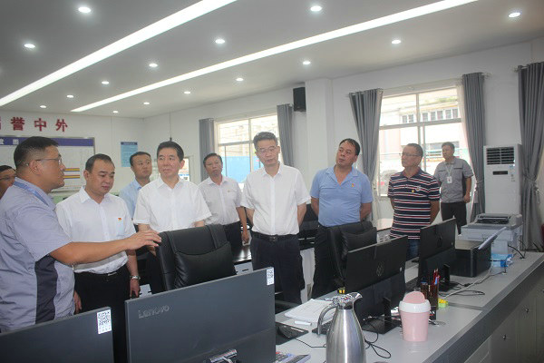 會后中鐵十一局集團紀委書記李洪安(左3)、駐廣東省住房城鄉(xiāng)建設(shè)廳紀檢監(jiān)察組副組長唐昊(左2)參觀軌道工程指揮中心