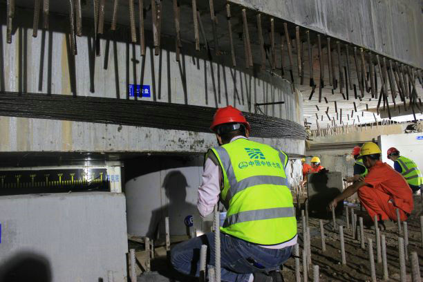 為盡量減少對(duì)既有線鐵路的影響,項(xiàng)目部選擇利用鐵路天窗點(diǎn)進(jìn)行要點(diǎn)轉(zhuǎn)體施工。羅曉斌說(shuō),為保證轉(zhuǎn)體時(shí)橋梁結(jié)構(gòu)處于平衡狀態(tài),項(xiàng)目部在轉(zhuǎn)體前利用位移傳感器配合千斤頂進(jìn)行配重試驗(yàn),計(jì)算出不平衡重量,進(jìn)行精準(zhǔn)配重。此外,還通過(guò)在梁體預(yù)埋傾角儀對(duì)梁體轉(zhuǎn)體過(guò)程中的坐標(biāo)、高程等數(shù)據(jù)進(jìn)行實(shí)時(shí)跟蹤,并反饋至地面控制臺(tái),為確保轉(zhuǎn)體施工安全,及時(shí)掌握轉(zhuǎn)體動(dòng)態(tài)提供了保障。