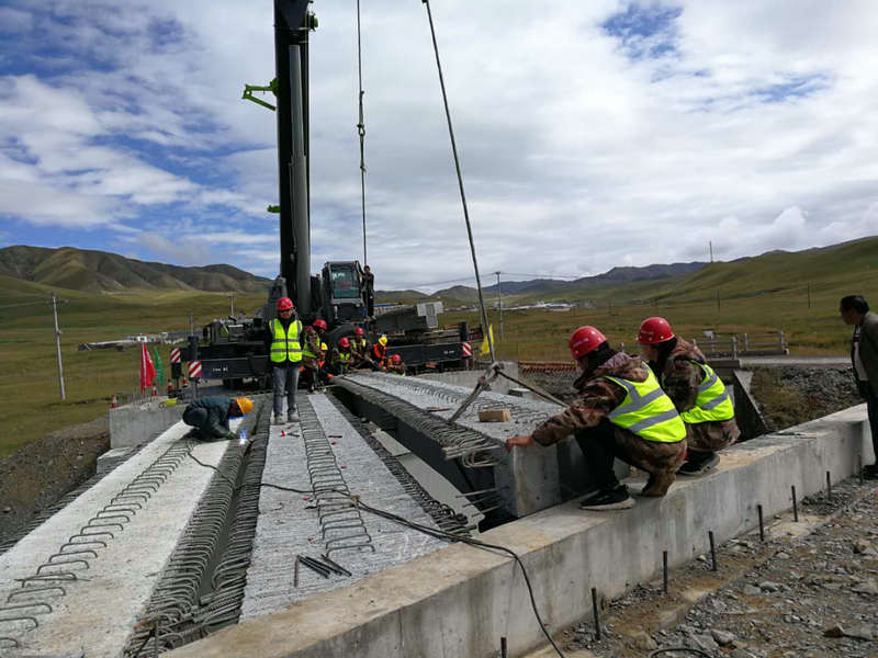 9月19日上午11時(shí)38分,伴隨著施工現(xiàn)場禮炮齊鳴,一片13米長,17噸重的T梁緩緩平移至橋臺上,青海省道308線夏同公路首片T梁架設(shè)成功。中鐵十一局二公司夏同二標(biāo)項(xiàng)目部全體人員以及夏同公路總監(jiān)辦人員共計(jì)50余人共同見證這一時(shí)刻。