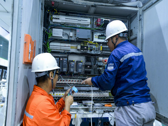 技術(shù)人員在設(shè)備檢測