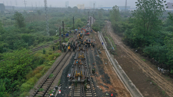 9月22日,在中鐵聯(lián)集武漢中心站內(nèi),中鐵七局武漢公司施工人員冒著大雨順利完成43號道岔軌道施工,標(biāo)志著中歐班列集結(jié)中心——中鐵聯(lián)集武漢鐵路集裝箱中心站新增線束工程順利貫通,使該線路初步具備通車條件。該項目預(yù)計9月28日完成交驗,開通后中歐班列(武漢)年編發(fā)量將達(dá)500列。