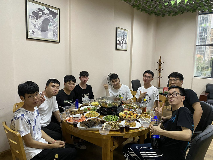 佳節(jié)本是團(tuán)圓日,奈何異鄉(xiāng)難歸矣。各項(xiàng)活動(dòng)結(jié)束后,全體職工歡聚在項(xiàng)目部二樓,享受大家庭之間的團(tuán)聚。這是本項(xiàng)目第一次完整意義上的全員團(tuán)聚,有美酒,有佳肴,有親人,有好友,歡聚一堂,迎中秋,慶國慶。