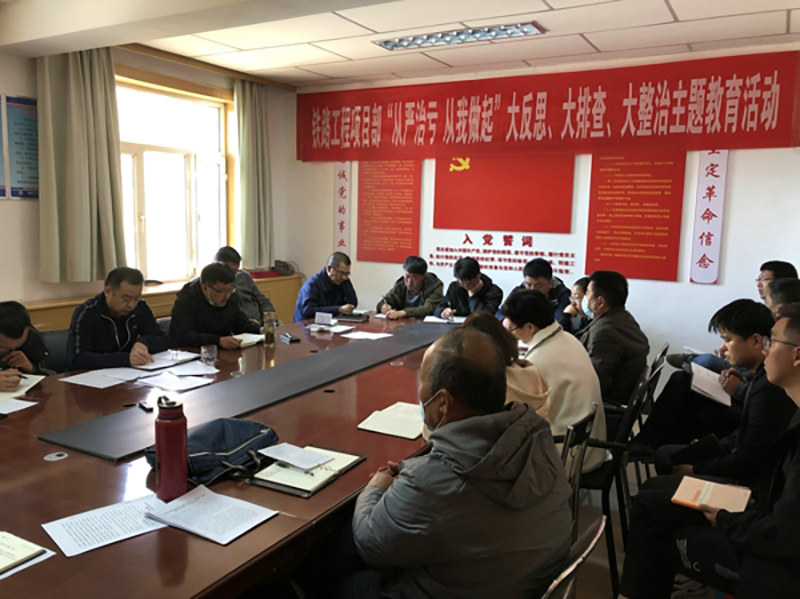 圖為鐵路工程項(xiàng)目部召開“從嚴(yán)治虧、從我做起”主題教育動(dòng)員會(huì)現(xiàn)場(chǎng)