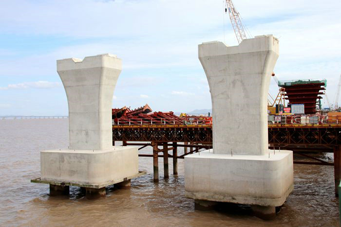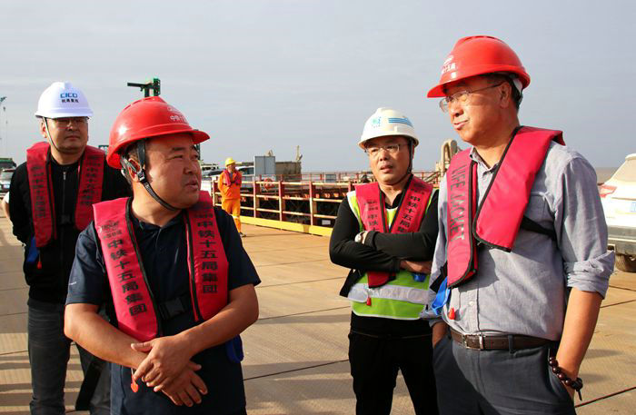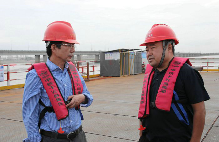 下午3點(diǎn)時分,陳世申、寧波市高等級公路建設(shè)管理中心副主任徐愛敏分別帶領(lǐng)有關(guān)人員到施工現(xiàn)場,對7000多米長的海上鋼棧橋護(hù)欄、8米寬的鋼板橋面的穩(wěn)定性、防護(hù)措施、安全監(jiān)測,以及幾百臺履帶吊、吊車、鉆孔機(jī)、運(yùn)輸車輛等機(jī)械設(shè)備采取觀察、詢問等辦法了解其運(yùn)行情況。在檢查施工質(zhì)量時,檢查組觀看了振動錘震壓鋼管樁操作過程,同時查看了棧橋平臺、鋼護(hù)筒、貝雷梁、鋼筋籠、承臺和橋墩、灌注混凝土等多道工序施工情況。