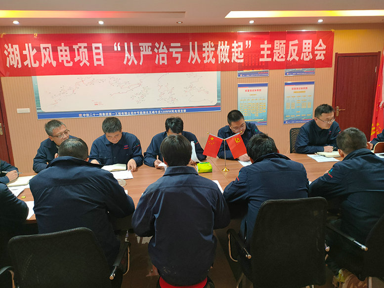 圖為湖北風(fēng)電項目部開展“從嚴(yán)治虧、從我做起”主題教育反思會現(xiàn)場