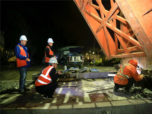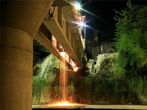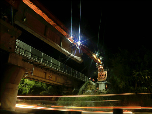 當(dāng)晚23時50分許,隨著最后一片32米預(yù)制T梁的架設(shè)完畢,標(biāo)志著該特大橋歷經(jīng)14天的緊張施工后順利實現(xiàn)貫通,為后續(xù)橋面系及鋪軌作業(yè)的快速推進(jìn)打下了堅實基礎(chǔ)。