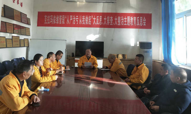 圖為克拉瑪依維管段開展“從嚴(yán)治虧、從我做起”主題教育反思會(huì)現(xiàn)場