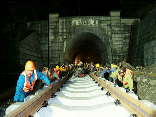 當天下午18時許,由一列列火車拉送到來的數(shù)百名建設者們依次抵達各自施工點,隨后在接到封鎖開始的指揮命令后,小站的重懷兩端岔區(qū)徹底地沸騰了起來。“搭接回流線,據(jù)軌拔砟,破底起道……”一系列工序均在激情高昂地號角聲中有序進行。