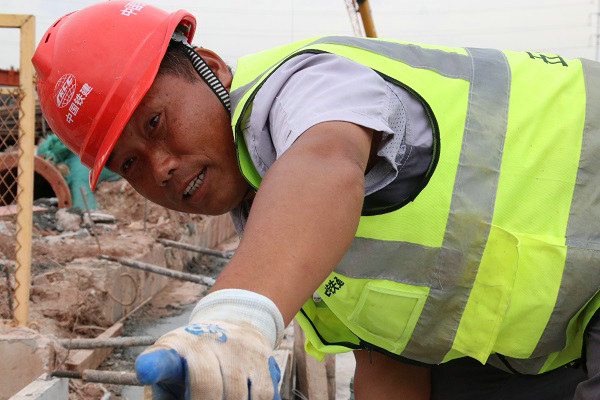四工區(qū)工人范學(xué)義在現(xiàn)場埋頭苦干