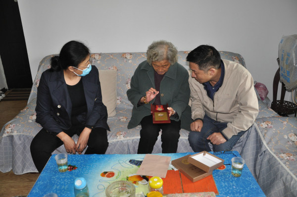 慰問(wèn)活動(dòng)中,公司社管后勤管理中心黨政負(fù)責(zé)人相繼來(lái)到老戰(zhàn)士楊文娟、霍躍榮、梁卓基、蘭國(guó)斌、馬振倫、陳洪乾等6人家中,送去了“中國(guó)人民志愿軍抗美援朝出國(guó)作戰(zhàn)70周年”紀(jì)念章和慰問(wèn)金、慰問(wèn)物資,向其轉(zhuǎn)達(dá)了集團(tuán)公司和武漢公司領(lǐng)導(dǎo)的關(guān)心,逐一詢問(wèn)了老人們目前的身體狀況和家庭情況。老戰(zhàn)士楊文娟當(dāng)年作為文藝兵參加了抗美援朝戰(zhàn)爭(zhēng),摸著紀(jì)念章楊老眼中泛起淚光,回憶起曾經(jīng)的戰(zhàn)斗國(guó)王,向大家講起了當(dāng)年的往事,還拿出了當(dāng)年的老照片給慰問(wèn)人員看。