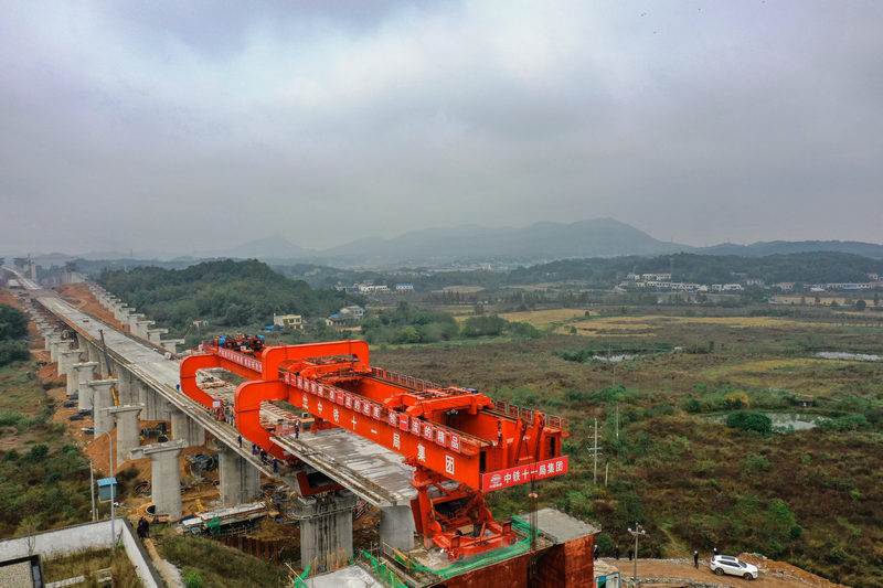 據(jù)悉,望城制梁場還承擔著新建常益長鐵路與長株潭城際鐵路上下行聯(lián)絡(luò)線、新建長沙西動車所動車走行左右線242孔T梁預(yù)制任務(wù),動走左線、動走右線所需架設(shè)T梁將通過新貫通的正線箱梁通道運輸至長沙西站方向反向進行架設(shè)。此次望城制梁場至長沙西站方向箱梁架設(shè)的順利完成為后續(xù)長沙西動車所T梁架設(shè)打開了“綠色通道”,為長沙西鋪軌基地(設(shè)置在長沙西動車所)的施工贏得了寶貴時間,為長沙西動車所的建設(shè)按下了“快進鍵”!
