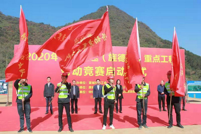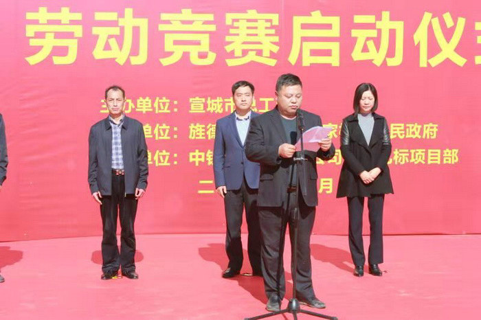 此次活動由安徽省宣城市總工會主辦,中鐵二十一局三公司蕪黃高速09標(biāo)段項目承辦。宣城市總工會副主席龔志剛、經(jīng)審委主任屠平瑋、宣城市交運局系統(tǒng)工會主席張福根、旌德縣委常委、組織部長、縣總工會主席胡紅蔚、縣交運局黨組書記、局長錢廣虎、縣總工會黨組書記、副主席王士和、蔡家橋鎮(zhèn)黨委副書記、鎮(zhèn)長傅世恩及項目全體參建職工和工人代表共計150余人參加了啟動儀式。