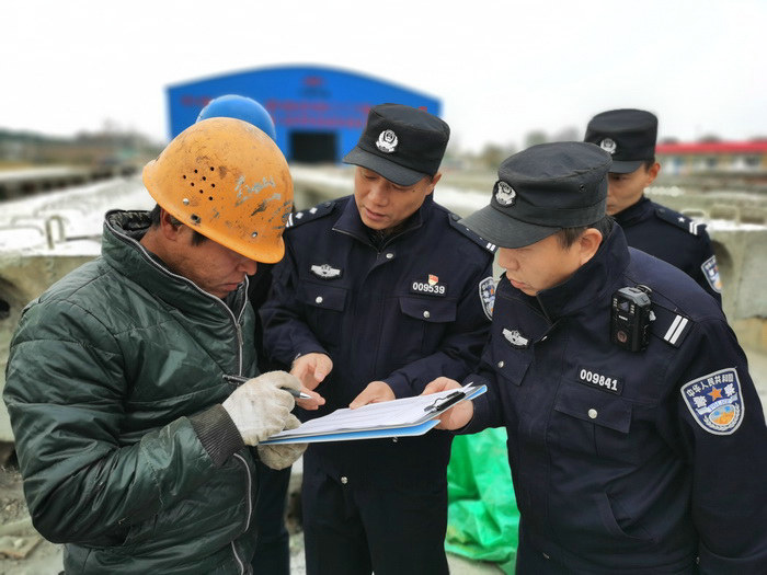 派出所民警現(xiàn)場核實農(nóng)民工工資發(fā)放情況