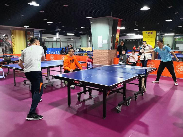 以“我運動、我健康、我快樂”為宗旨的“鐵建杯”職工乒乓球賽場標(biāo)語響亮激勵奮進(jìn),選手摩拳擦掌精神飽滿,觀眾歡呼雀躍氣氛熱烈。“追夢揚威、奮勇爭先”,“青春似火、激情無限”,“力爭上游、永不言敗”口號此起彼伏、聲聲入耳。參賽選手你來我往、主動出擊的凌厲攻勢,你推我擋、積極迎戰(zhàn)的頑強防守,直拍、橫拍、旋轉(zhuǎn)球、弧線球斗智斗勇一展風(fēng)采。昔日施工現(xiàn)場的默默奉獻(xiàn)者,今天乒乓賽場顯英姿。盡管球技有的嫻熟、有的稚嫩,大家重在參與,比的是執(zhí)著、賽的是友誼,享受的是過程。愛“乒”才會贏,選手們的執(zhí)著贏得陣陣喝彩。