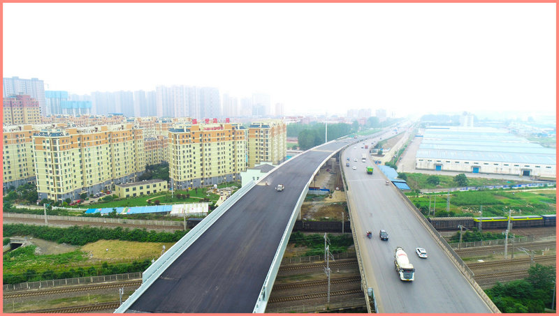 該工程項目是漯河市第一例橫跨京廣鐵路既有線鋼箱梁頂推工程,位于漯河市郾城區(qū)龍江路,在YK319+837.971與京廣鐵路、孟漯鐵路、口岸專用線鐵路交叉,橋位處跨越京廣鐵路等5股鐵路線,采用37+50+37m鋼箱梁上跨鐵路,鋼箱梁總重約2100噸,鋼箱梁橋面寬度23.4米,全程共計124米,采用頂推施工方案橫跨鐵路線,于2020年5月建成通車。