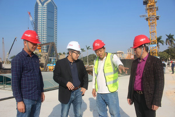 工區(qū)經(jīng)理何佳雷(左2)堅(jiān)持深入現(xiàn)場(chǎng)做好組織指揮,及時(shí)解決施工中有關(guān)問(wèn)題